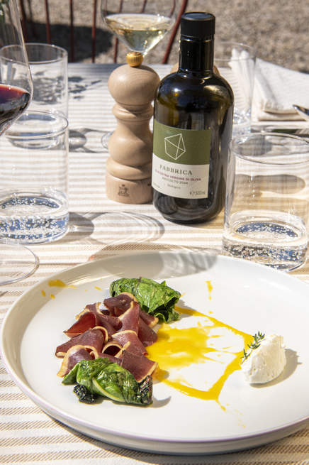 Il Cervo, our garden-side dining space near the pool, offers breakfast and lunch exclusively to hotel guests. Mornings begin with a gourmet spread: fresh breads from ancient grains, delicate pastries, and regional meats and cheeses — changing daily for a fresh discovery each morning.