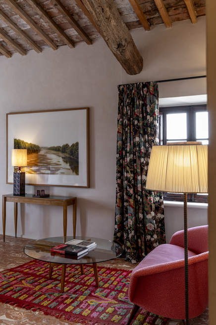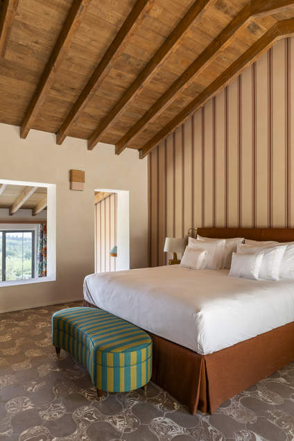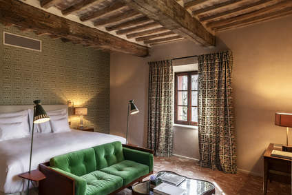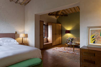 Located on the top floor via lift access with panoramic views over the vineyard and gardens as far as Monte Amiata, shower, and walk-in wardrobe