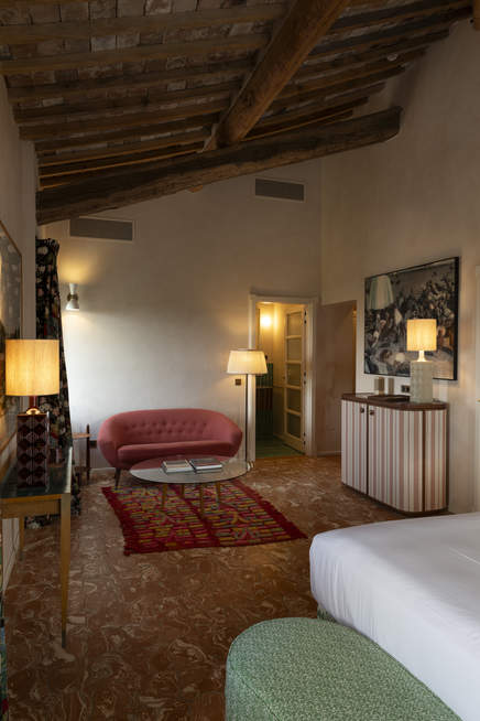 Located at the corner of the villa, Giovanbattista boasts lots of natural light. The vintage sitting area and the custom-built mini bar make a great spot to unwind at the end of the day.